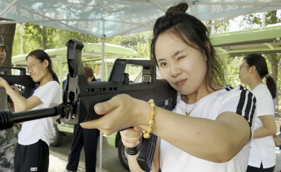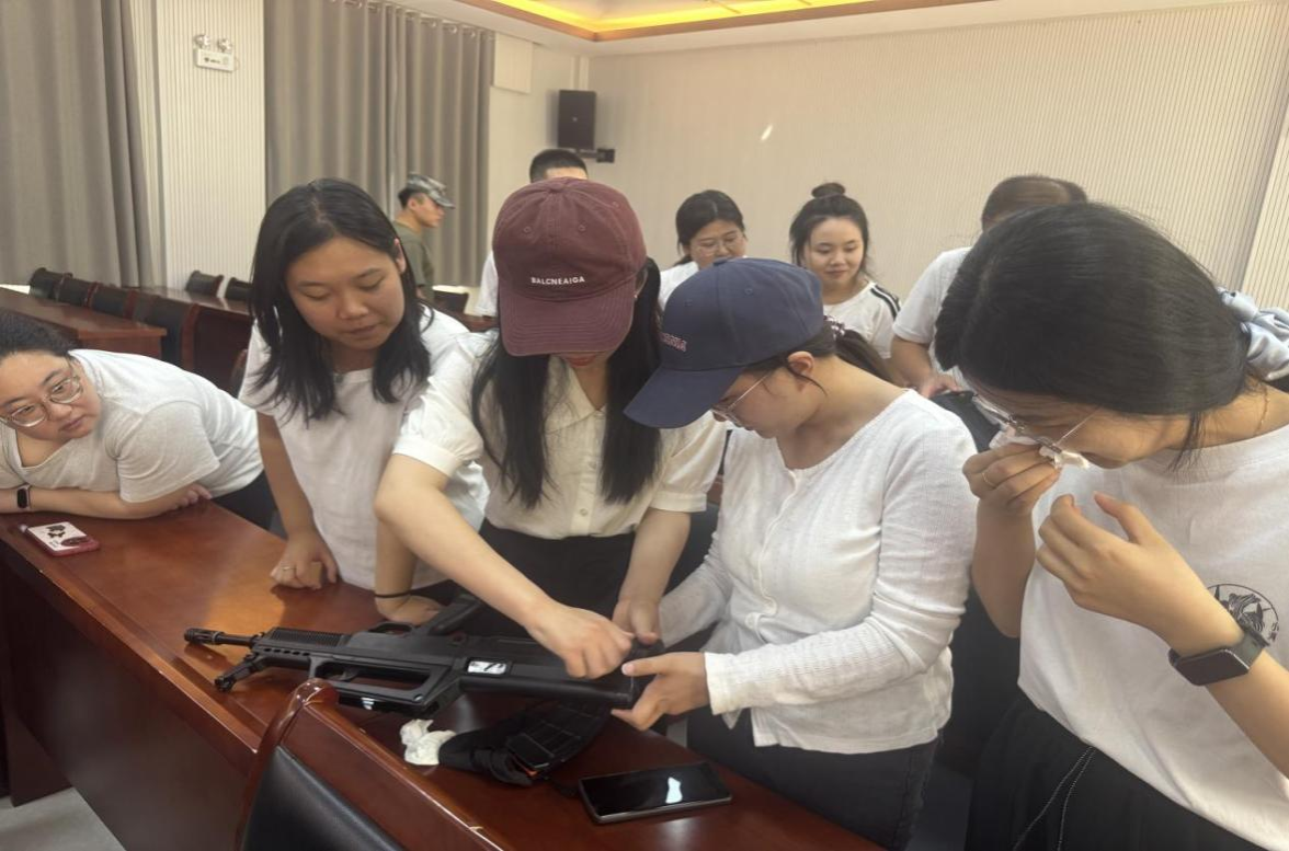 音乐国防课带来的震撼余韵未消,精彩的现场展示和体验环节接踵而至,尤其是枪支拆解学习和打靶模拟体验,同学们在工作人员的指导下,双手握枪、屏息凝神,体验实战射击的紧张感。电子射击系统能精准捕捉弹道轨迹,即时反馈射击精度,既保障安全,又提升训练趣味性。同学们近距离感受到了军事装备的精密构造与操作技巧,也体会到了国防力量的硬核魅力和军人日常训练的严谨与艰辛。