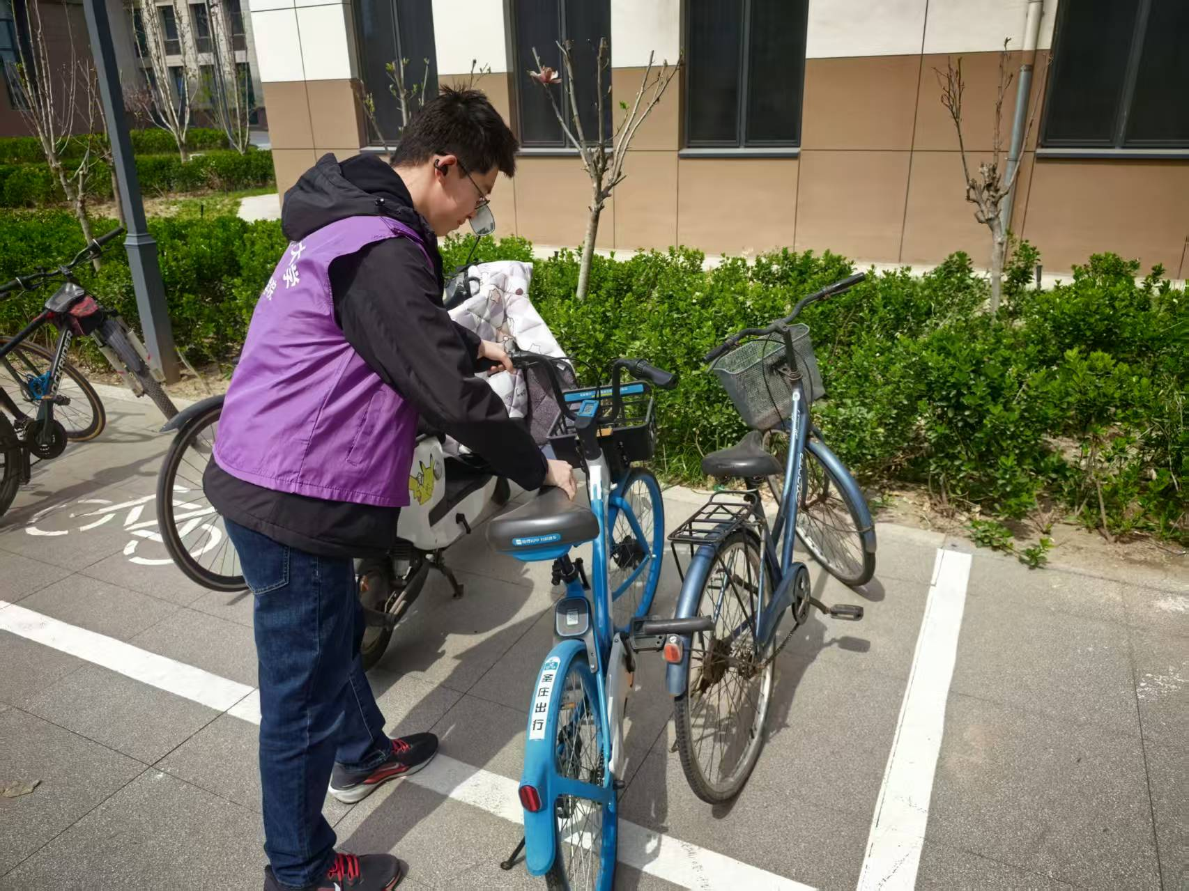 楼周边责任区域进行全面细致清理。大家分工明确、协作有序,认真捡拾路面烟头、纸屑、塑料袋等各类垃圾,规范整理乱停乱放的自行车,彻底清除绿化带、墙角、楼梯口等卫生死角,用双手美化校园环境、维护校园秩序,以实际行动诠释劳动精神,展现青年学子责任与担当。